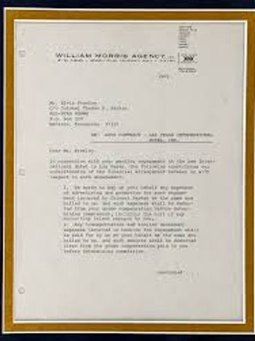 Elvis’ first move contract was for a “1 picture deal” with the option for “6 more”. Elvis received $15,000 for the first movie, $20,000 for the second, $25,000 for the third, and increasing to a maximum of $100,000 for the seventh. The Colonel negotiated a provision that allowed Elvis to star, with another studio, for “1 picture per year”. The movies were entitled “Loving You (1957) and King Creole (1958)”. In January 1957 the Colonel renegotiated a $ 50,000.00 bonus, due to the box office success, for Loving You. Nine months later, in November, the Colonel renegotiated successfully for Elvis to receive $30,000 in expenses as well as another $50,000 bonus for King Creole.